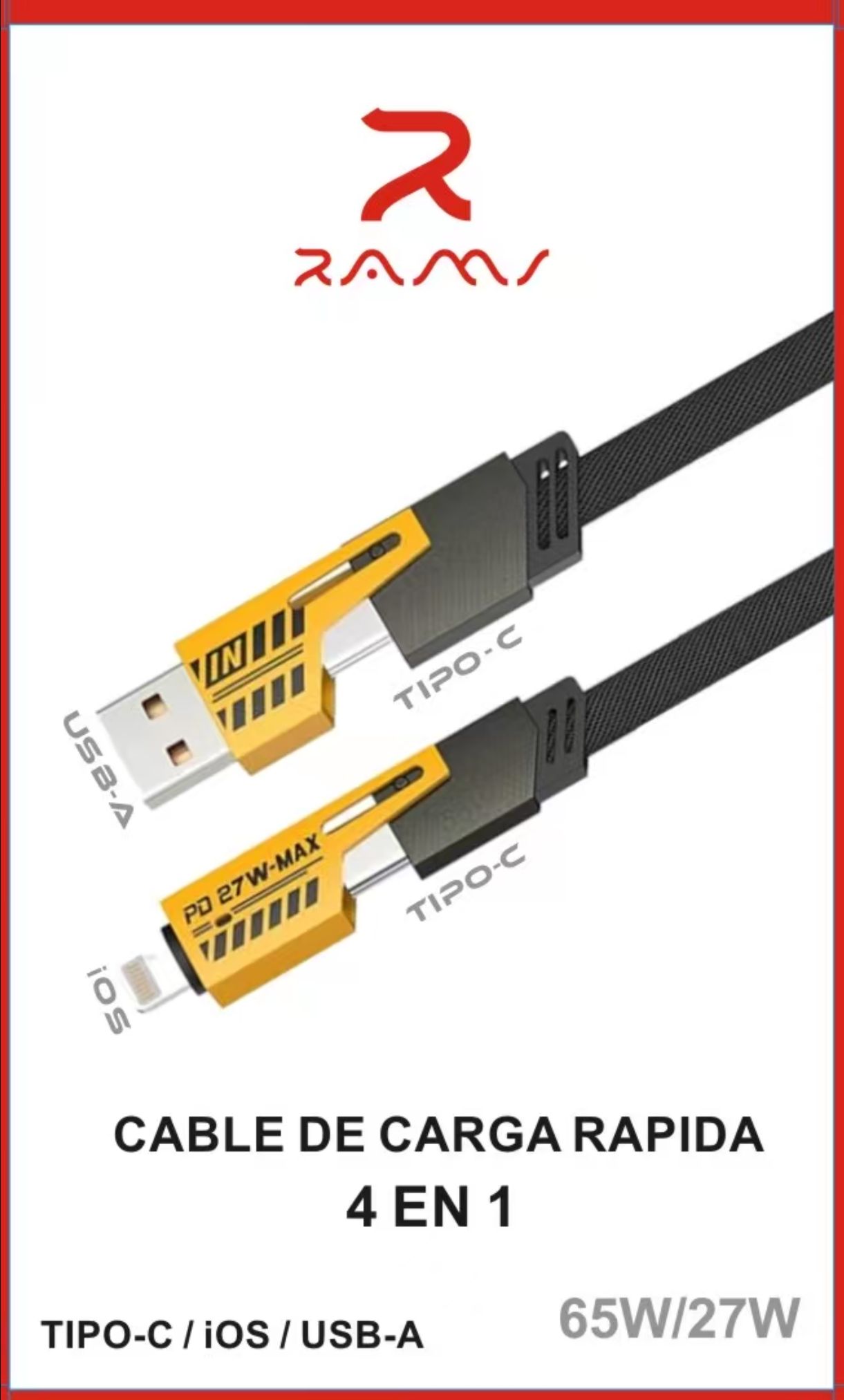 CABLE LINO 4 EN 1 USB-A / TIPO-C / IOS RAMS