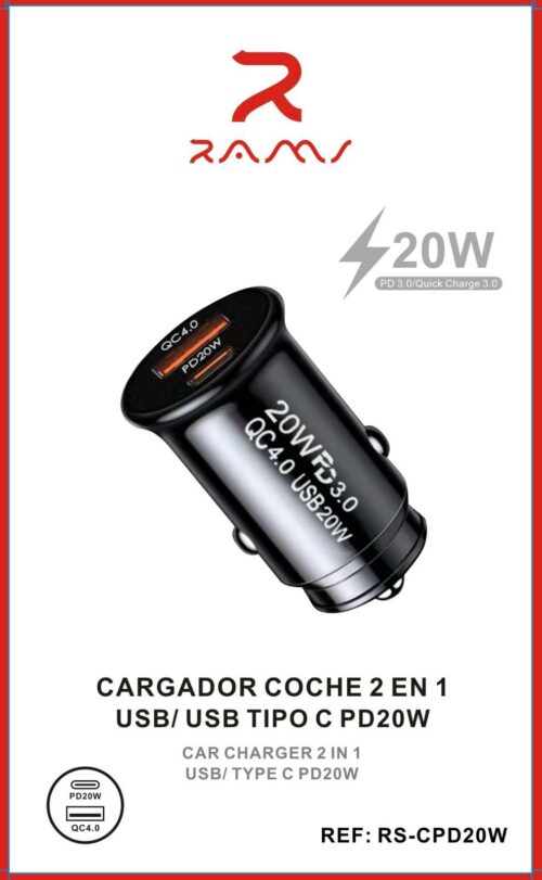 CARGADOR MECHERO COCHE 2 EN 1 USB/ TIPO C 20W